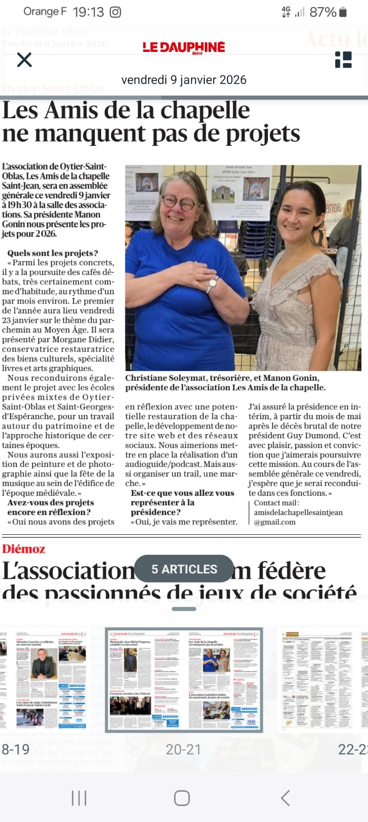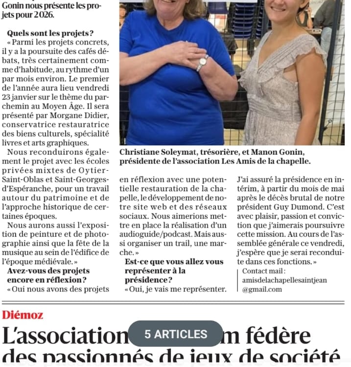 Le café débat organisé vendredi par les Amis de la chapelle Saint-Jean de Oytier-Saint-Oblas a rassemblé une cinquantaine de personnes pour la conférence de Thierry Dennilauler, secrétaire de l’association, passionné par l’histoire. Le président Guy Dumond revient sur l’évènement.